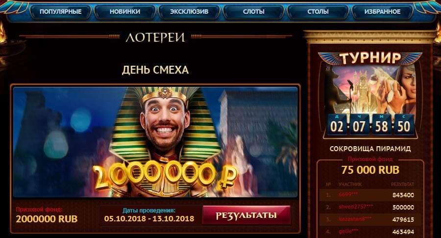 Еще есть турниры и акции, которые постоянно проводит интернет казино, актуальность нужно всегда проверять на сайте, следите за изменениями при надвигающихся праздниках!