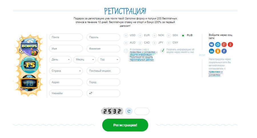 Форма регистрация на сайте казино Х