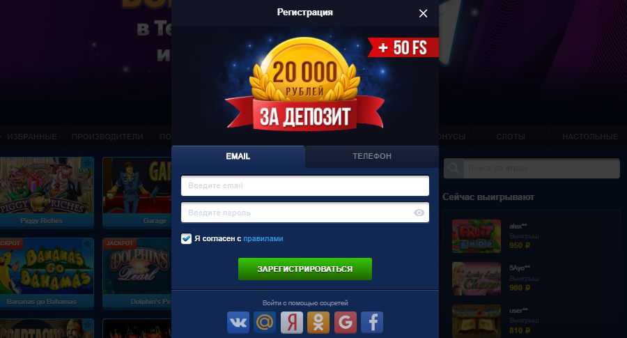 Чтобы играть в лучших казино с выводом с использованием собственных накоплений, пользователю потребуется создать аккаунт. Пройти регистрацию возможно на официальном сайте, где предложено авторизоваться через социальные сети или заполнить регистрационную форму. При выборе первого варианта пользователь только подтверждает свое согласие на обработку персональных данных. Заполнение профиля и авторизацию осуществляет система.