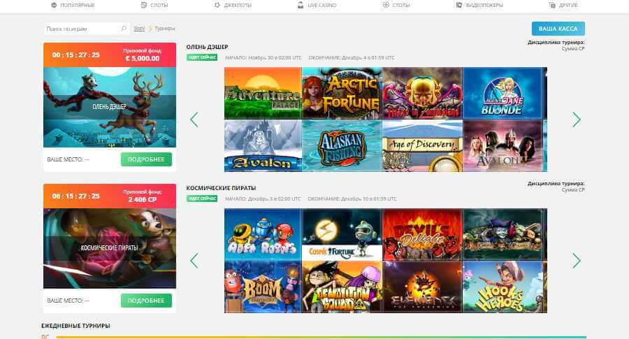 Регистрация СЛОТвВ заведении введена своя валют – Comp-поинты. Причем эти поощрительные баллы возвращаются независимо от результатов сделанных ставок. В любой момент их можно обменять на реальные средства, которые не надо отыгрывать. Правда начисление поинтов зависит от типа гейма. Просто надо внимательно читать правила, установленные на этом ресурсе. Кстати, еще один важный момент. В казино действует классная акция: каждый день в случайном порядке выбирается определенный софт и, играя в него, можно получать поинты для обмена на реальные деньги. Чтобы не упустить свой шанс нужно регулярно просматривать главную страницу в разделе «Игра дня».